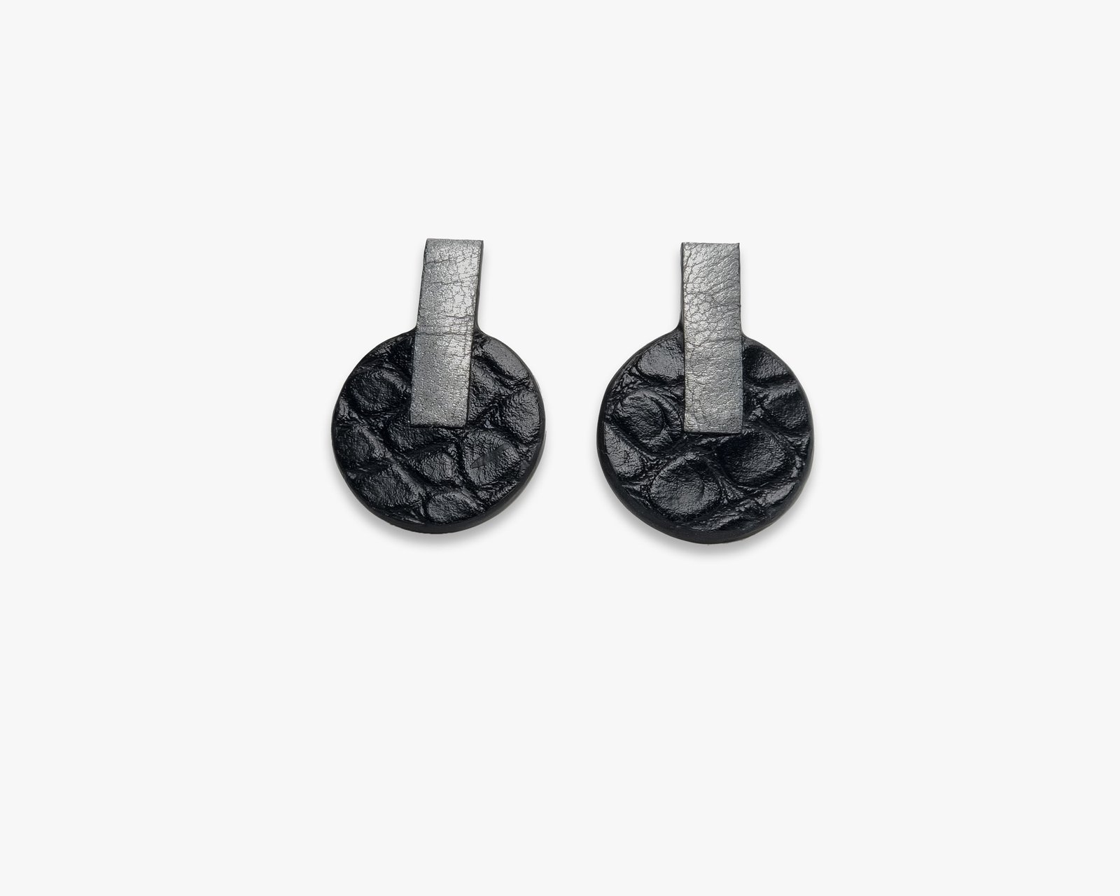 Boucles d’oreilles modernes et discrètes en cuir noir et argent vieilli. Une touche rock à votre tenue!